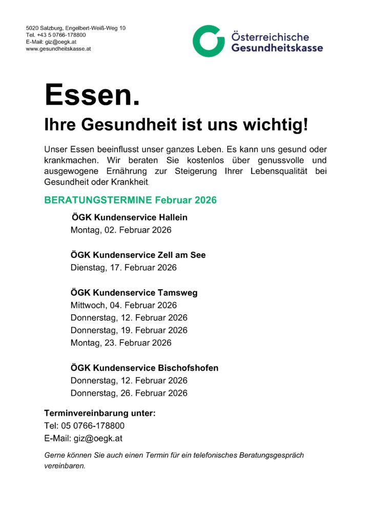 Ernährungsberatung Jänner + Februar 2026
