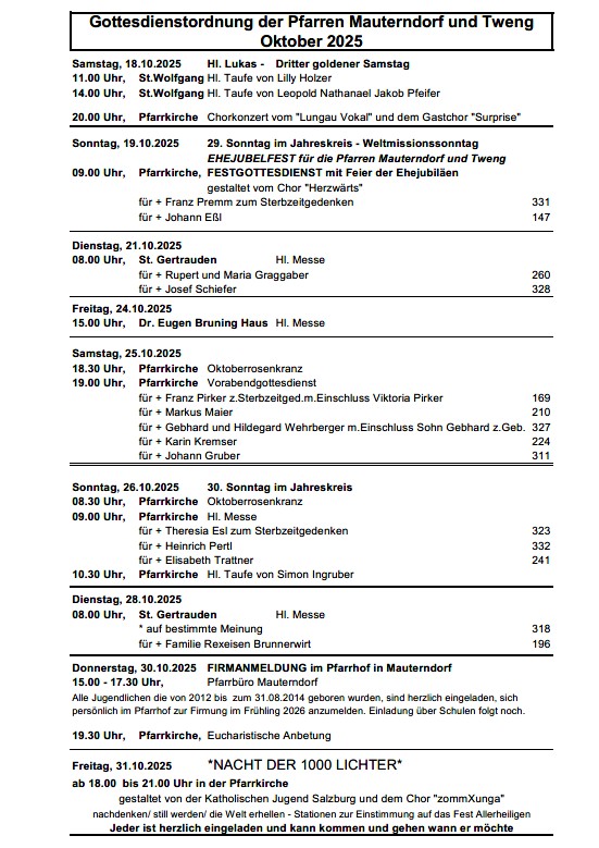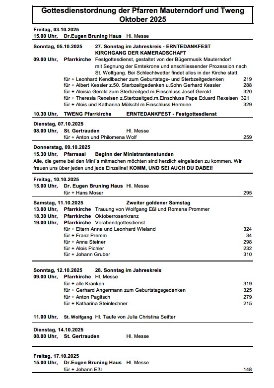 Gottesdienstordnung Oktober 2025