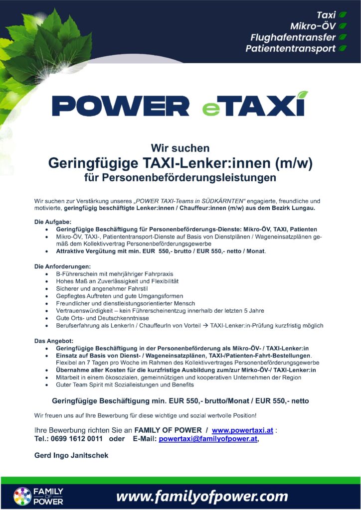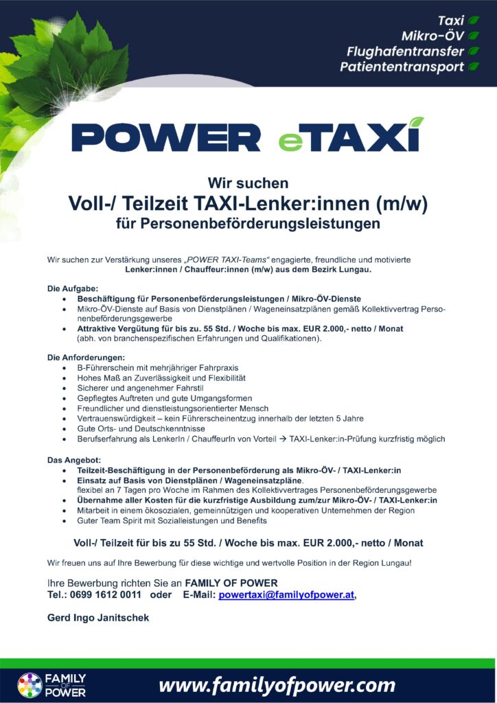 Stellenausschreibungen TAXI-Chauffeur:innen Lungau